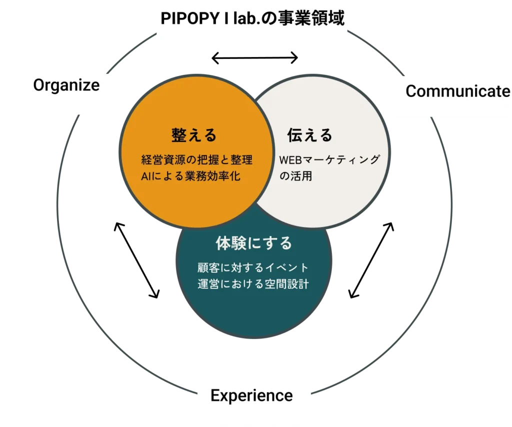 中小企業・個人事業主の方へ 営業・集客・運営を AIで“無理なく回る” 仕組みに変えます 今あるものを活かしながら一緒に考え、一緒に直し、一緒に前に進みます。 60分無料で課題整理 こんな状態で止まっていませんか? 何を改善すればいいのか分からないAIやDXに興味はあるが、触りきれていないWeb・SNSが「やらなきゃ」で止まっている営業・集客が属人化している作ったけど使われていない仕組みが多い どれか1つでも当てはまれば、ここが入口です PIPOPY I lab.とは PIPOPY I lab.は、考える人、現場、お客様、その間に立って、仕組みを整え、形にする実装ラボです。難しい言葉や流行を押しつけるのではなく、「今あるもの」を活かしながら、 一緒に考え、一緒に直し、一緒に前に進む。それらを、大切にしています。